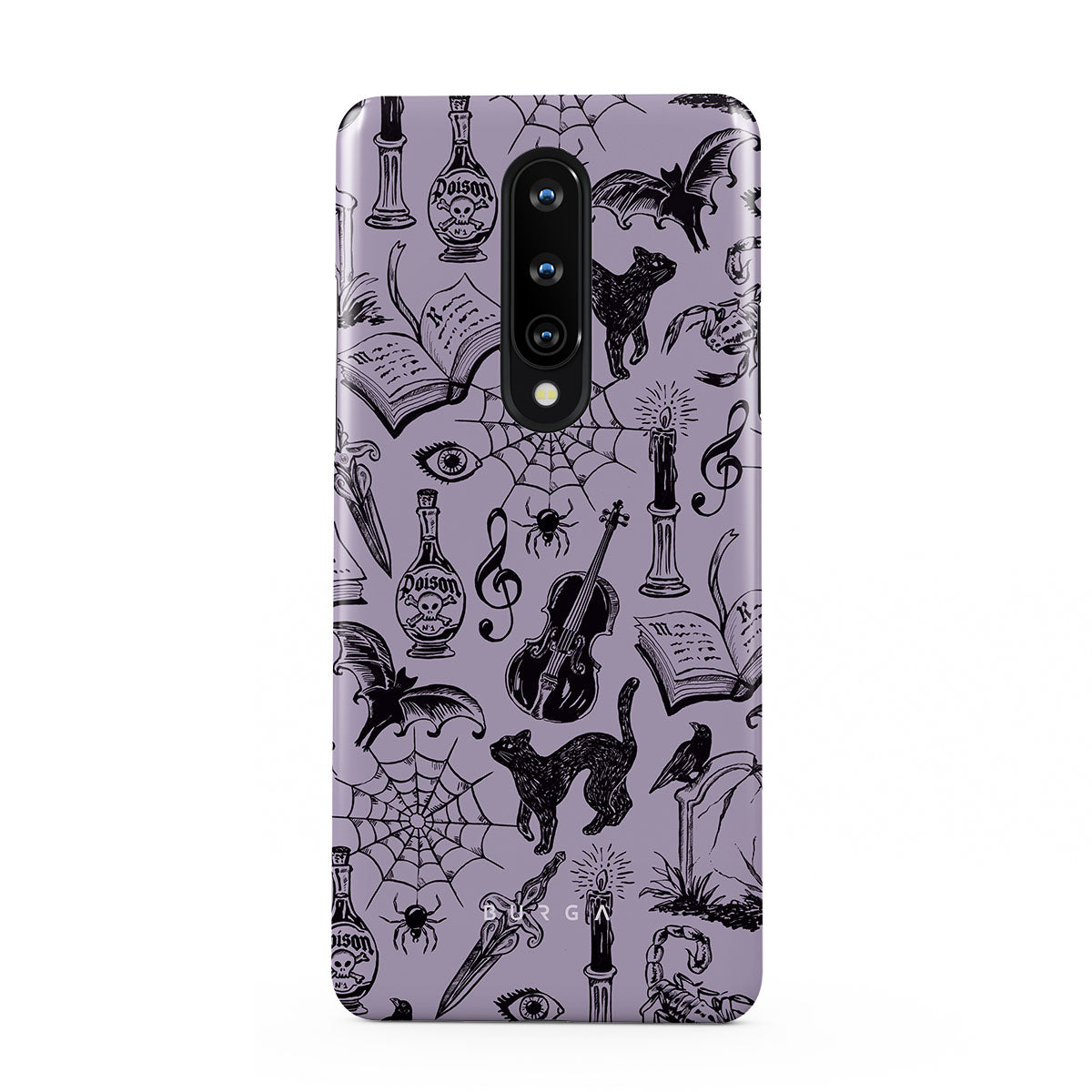 Este design contém: rabiscos góticos, elementos místicos, aranhas, teia de aranha, gato, violino, olho, vela, adaga, livro, morcego, corvo, escorpião