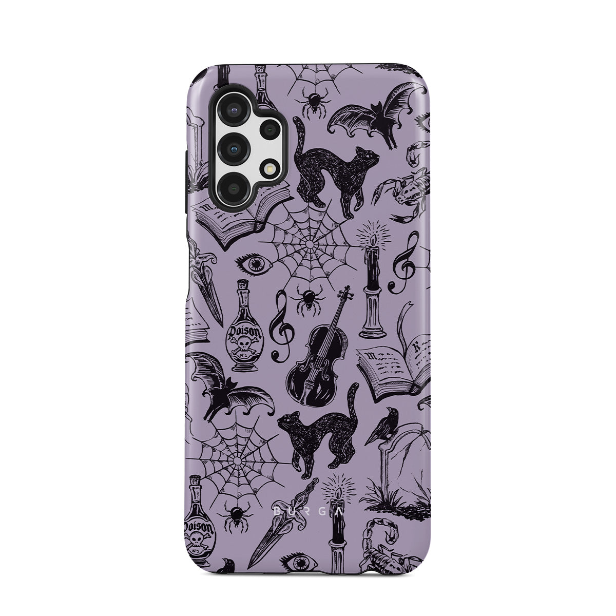 Este design contém: rabiscos góticos, elementos místicos, aranhas, teia de aranha, gato, violino, olho, vela, adaga, livro, morcego, corvo, escorpião