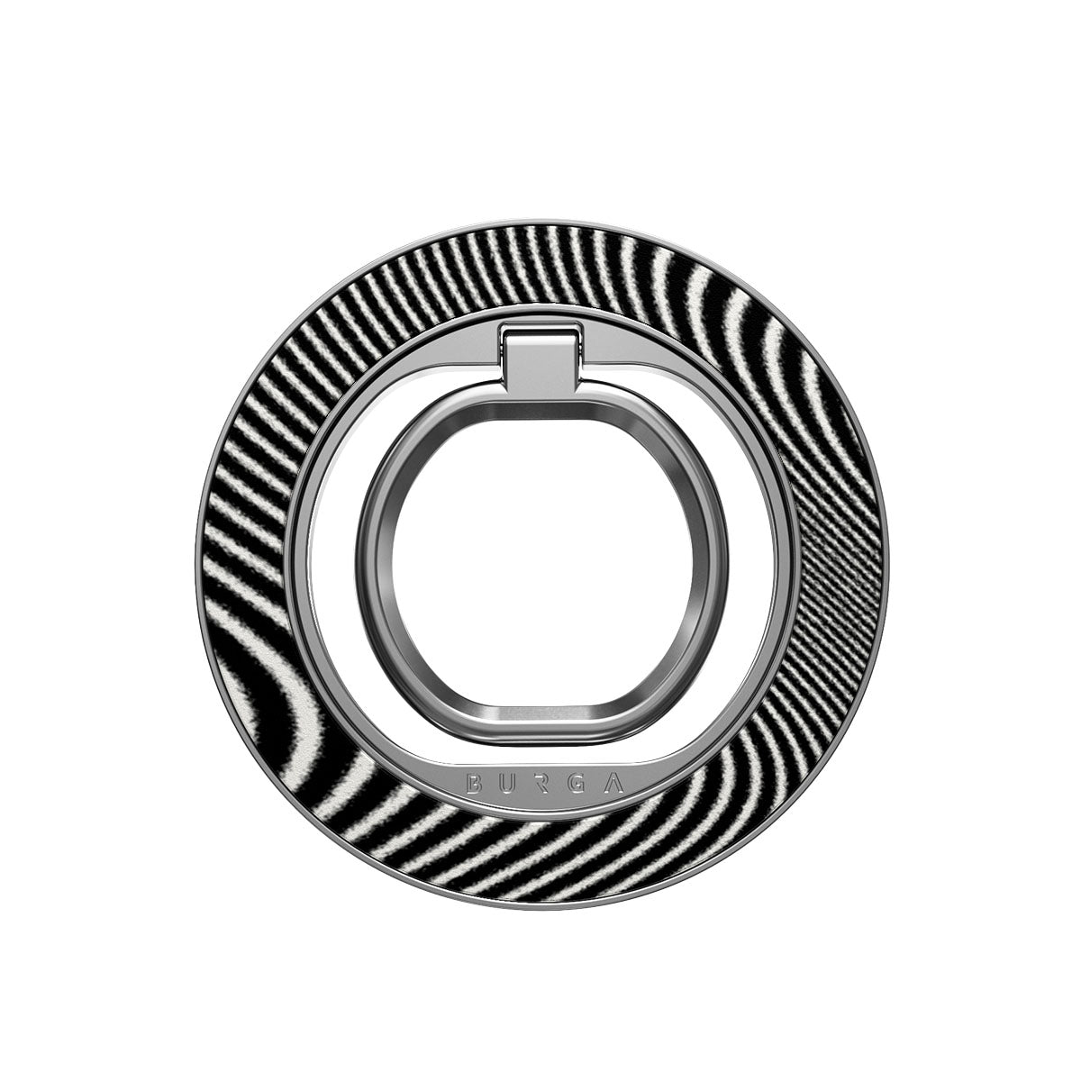Este suporte em anel magnético encaixa-se no lugar com um clique satisfatório, sem adesivos, sem complicações. Usa-o como pega para fazer scroll com uma mão, um suporte para conteúdo mãos-livres ou uma peça de destaque que combina perfeitamente com a tua capa BURGA.