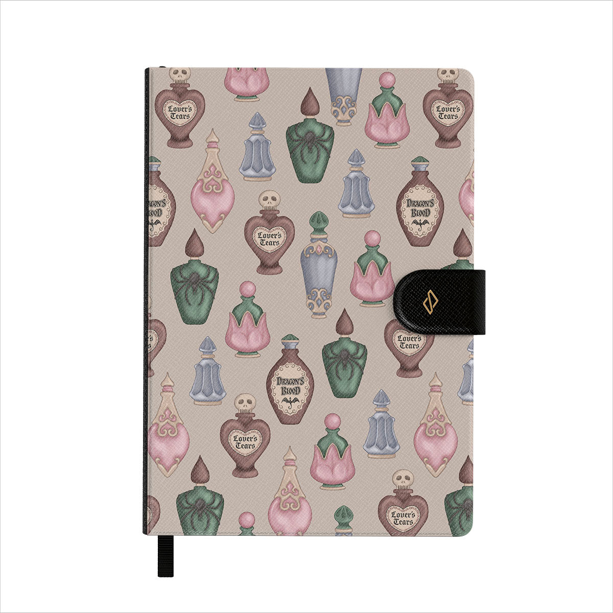 - Capa dura frontal em pele sintética vegana com designs únicos e elegantes;