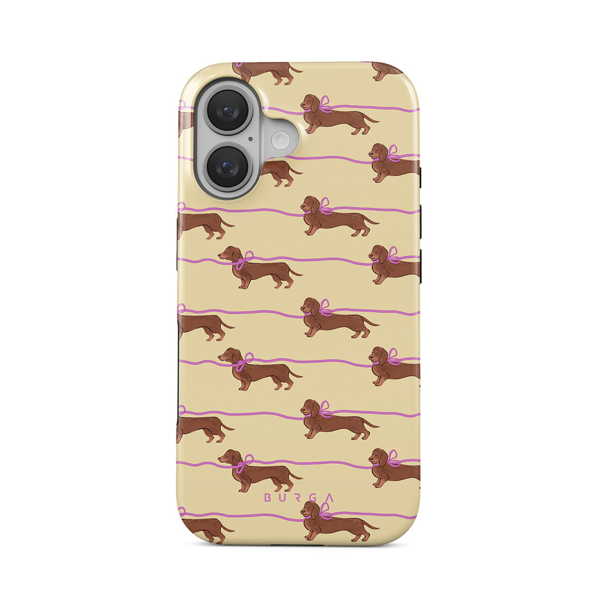 Este design contém: dachshunds com laços rosa, cães fofos.