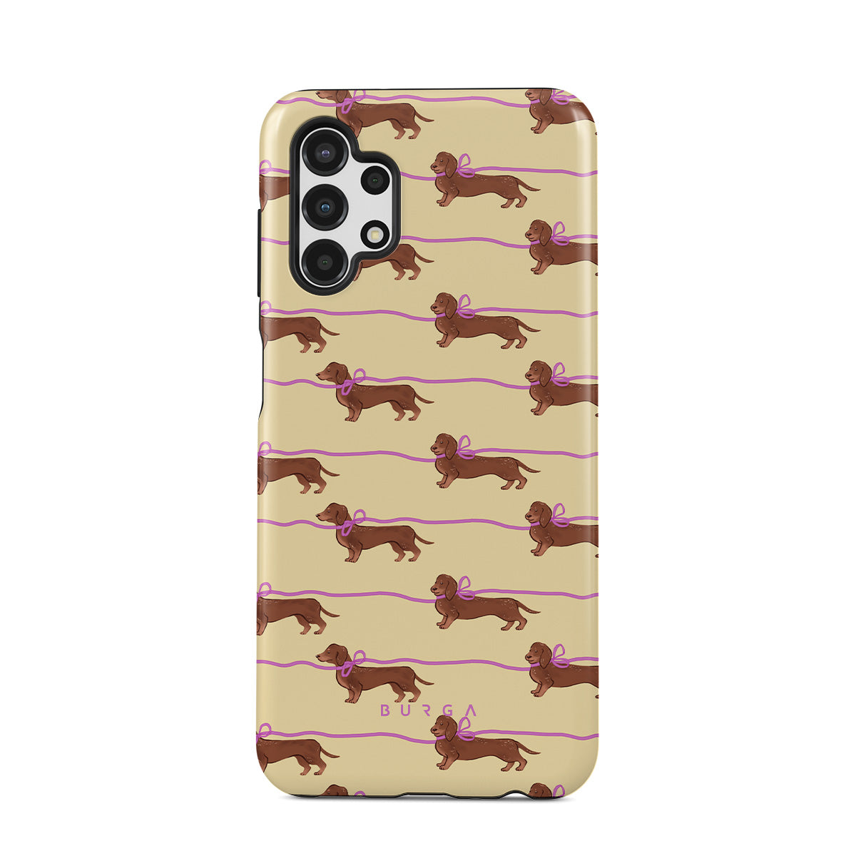 Este design contém: dachshunds com laços rosa, cães fofos.