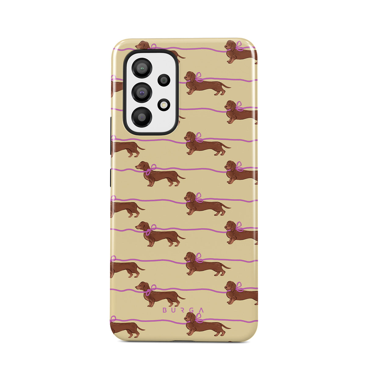Este design contém: dachshunds com laços rosa, cães fofos.