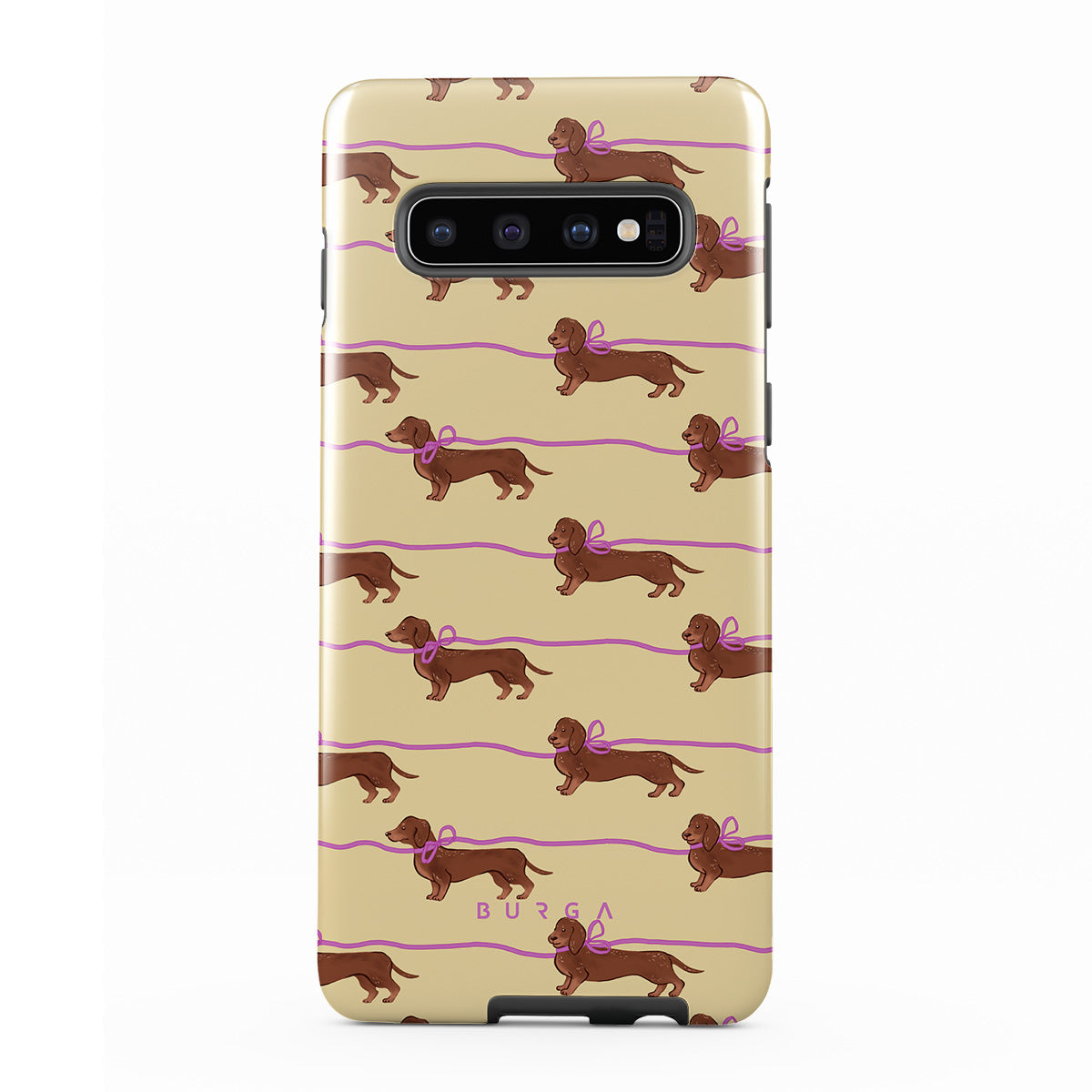 Este design contém: dachshunds com laços rosa, cães fofos.