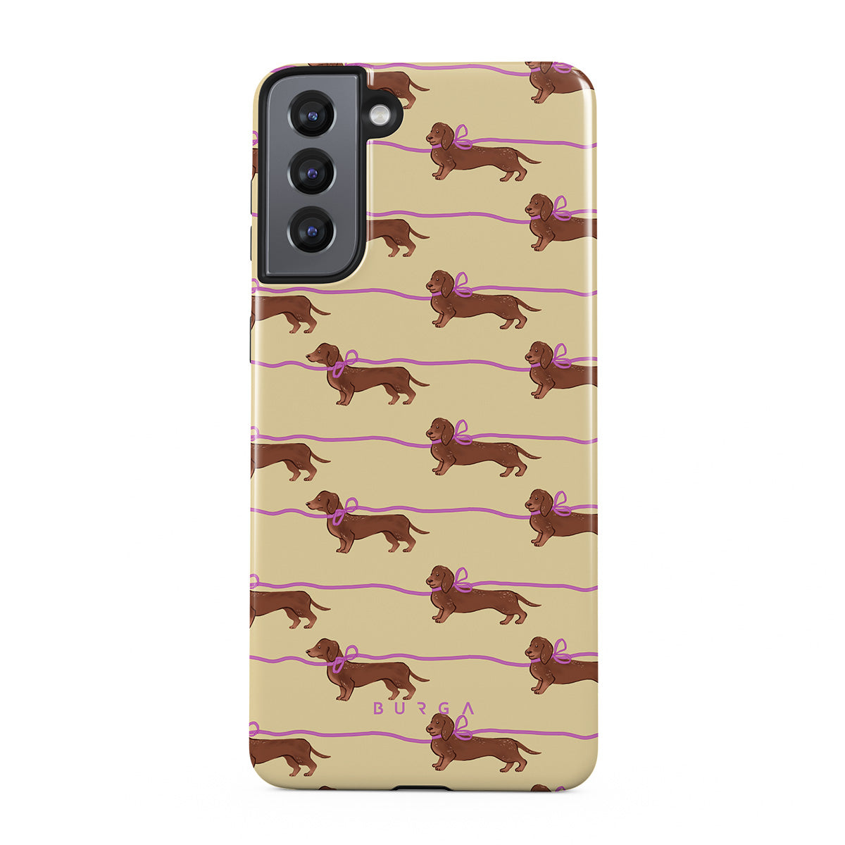 Este design contém: dachshunds com laços rosa, cães fofos.