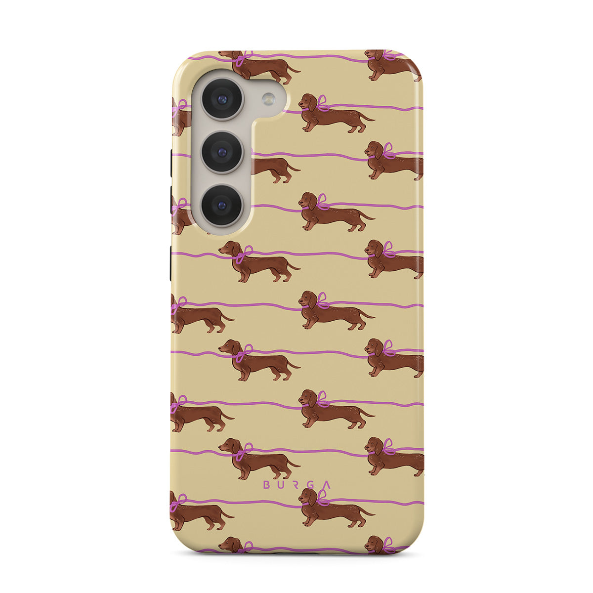 Este design contém: dachshunds com laços rosa, cães fofos.