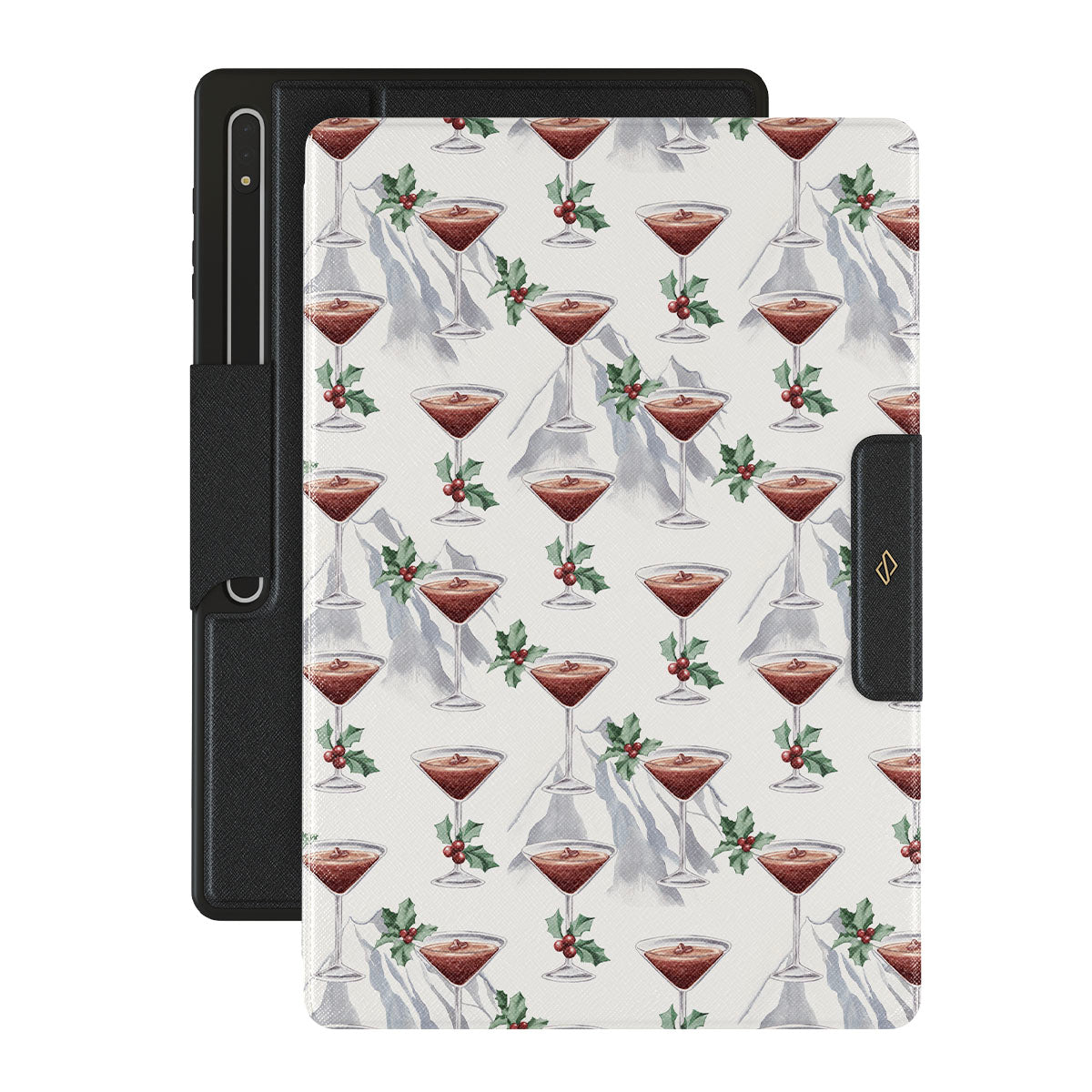 Este design contém: copos de coquetel, martinis, folhas de azevinho