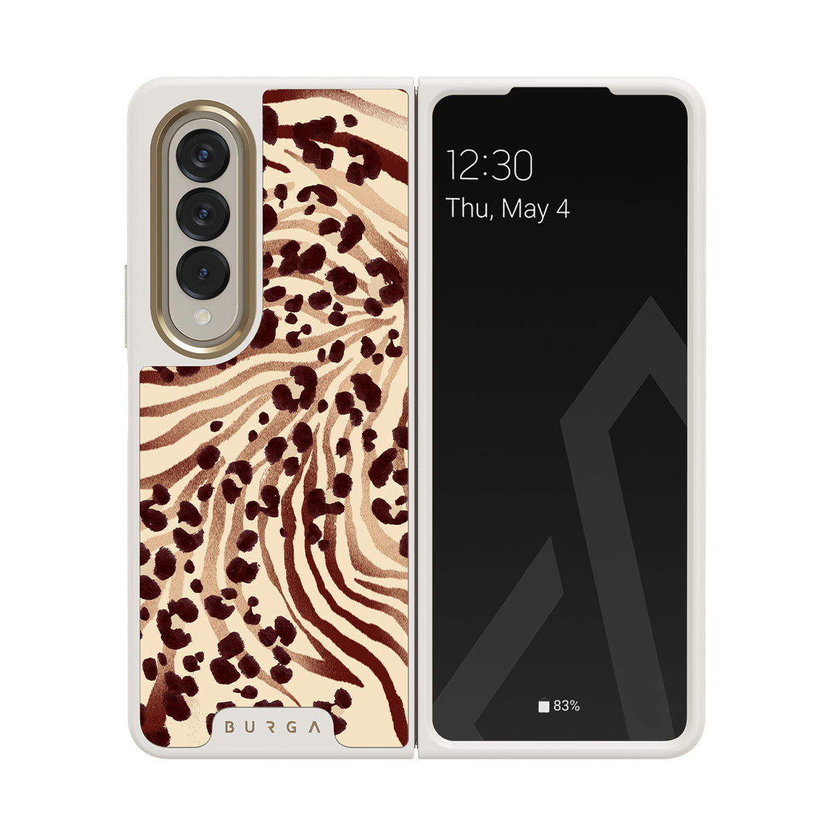 Este design contém: estampa mista de leopardo e zebra, fundo creme, estampa de animal.