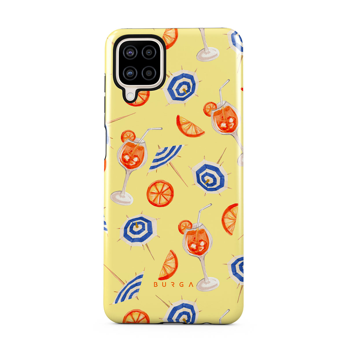 Este design contém: bebidas, coquetéis, mocktails, laranjas, padrões de praia, guarda-sóis