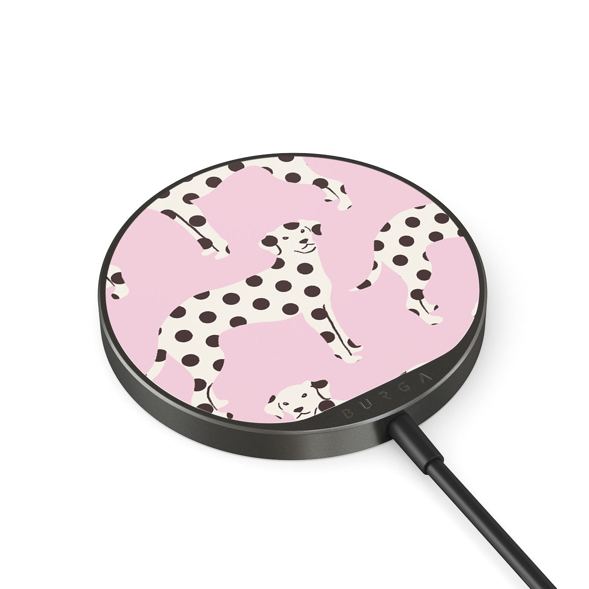 Este design contém: dálmatas sobre fundo rosa bebê.