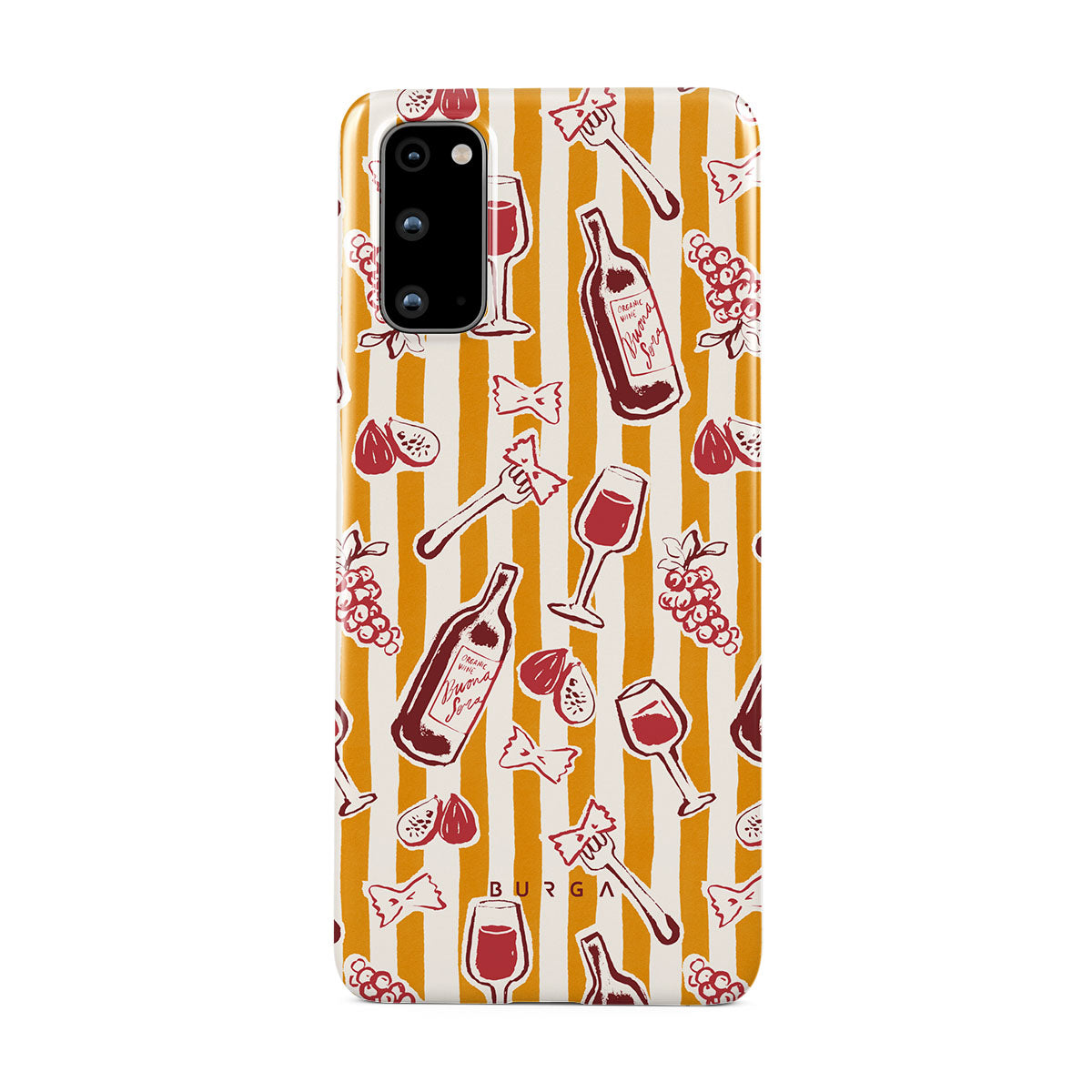 Este design contém: fruta, figos, uvas, garfos, massa, vinho, copo, riscas.