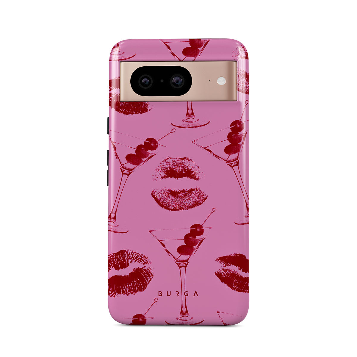 Este design contém: lábios vermelhos, beijos, copos de cocktail, martinis.
