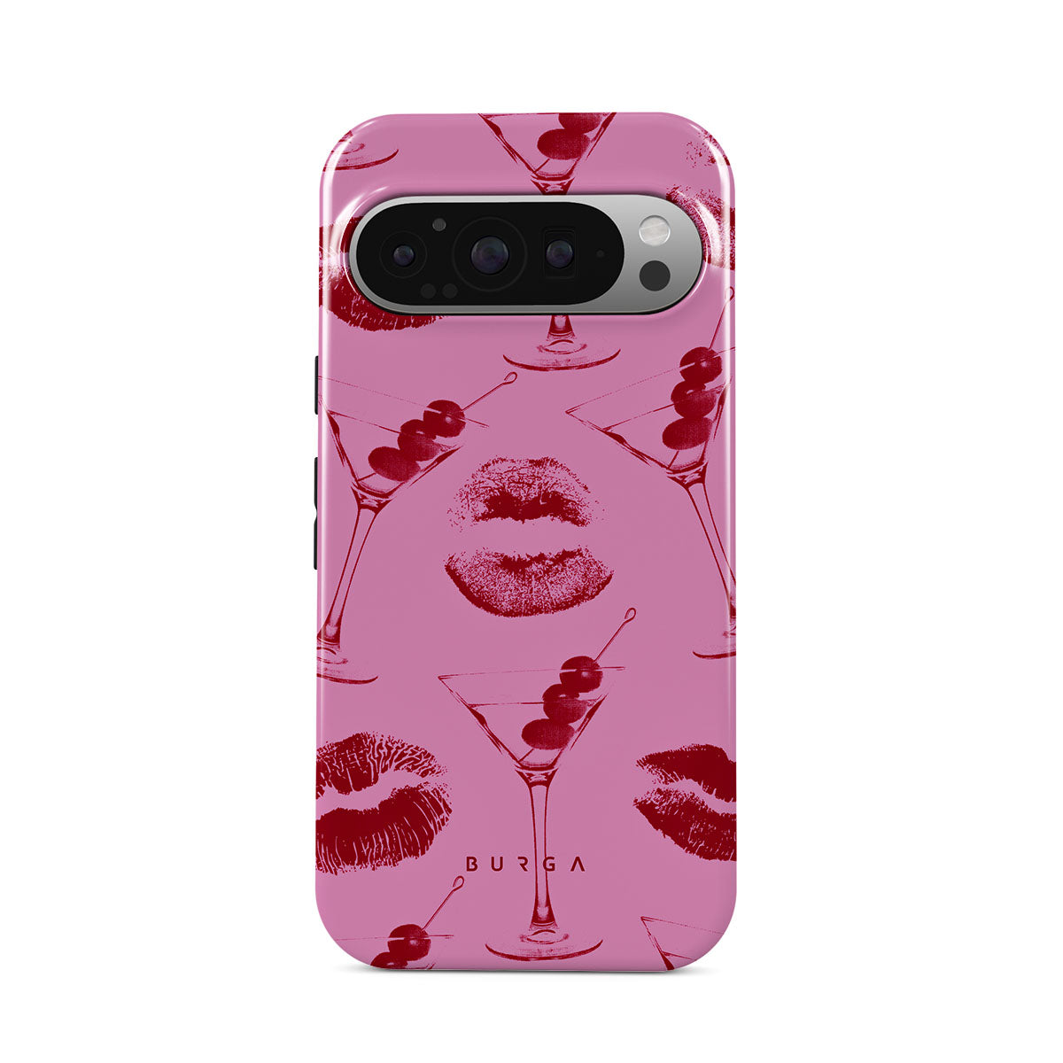 Este design contém: lábios vermelhos, beijos, copos de cocktail, martinis.
