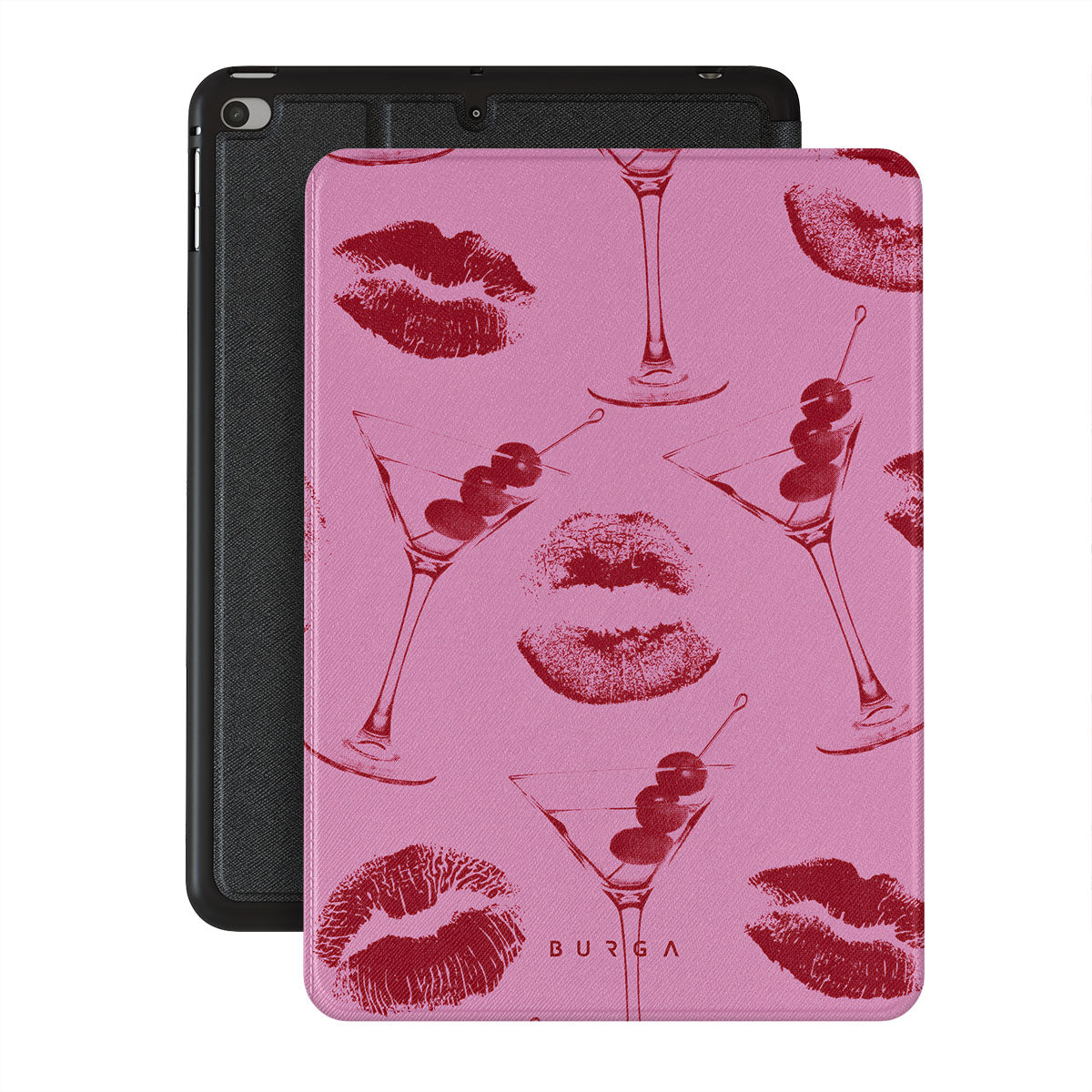 Este design contém: lábios vermelhos, beijos, copos de cocktail, martinis.