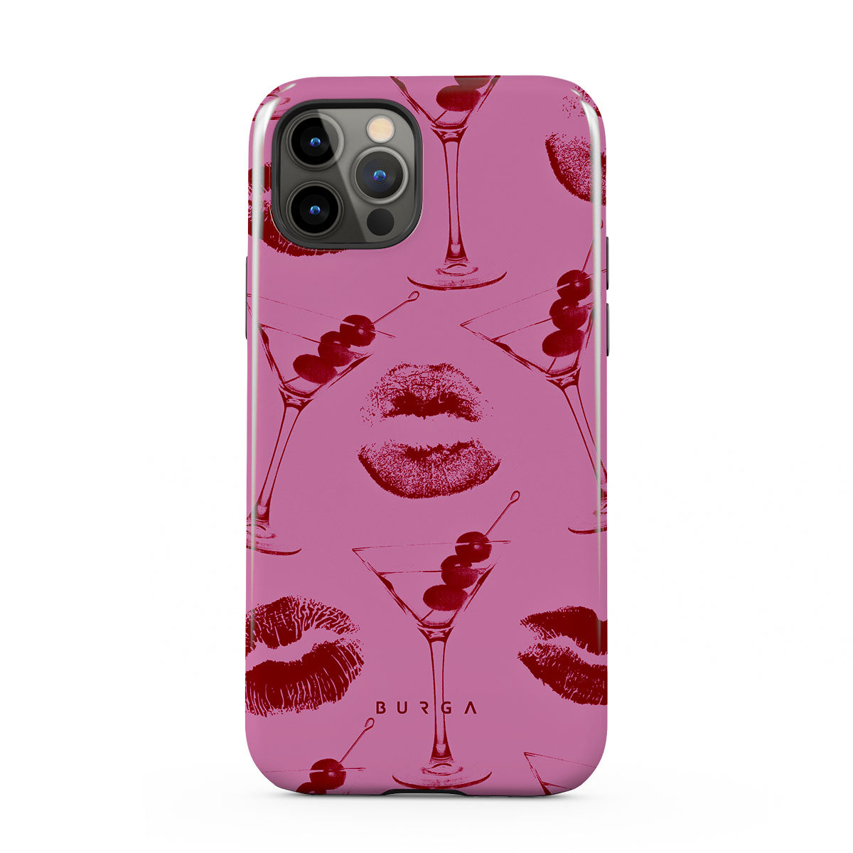 Este design contém: lábios vermelhos, beijos, copos de cocktail, martinis.