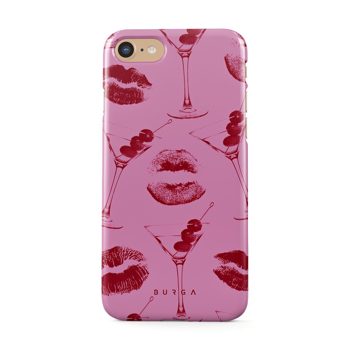 Este design contém: lábios vermelhos, beijos, copos de cocktail, martinis.