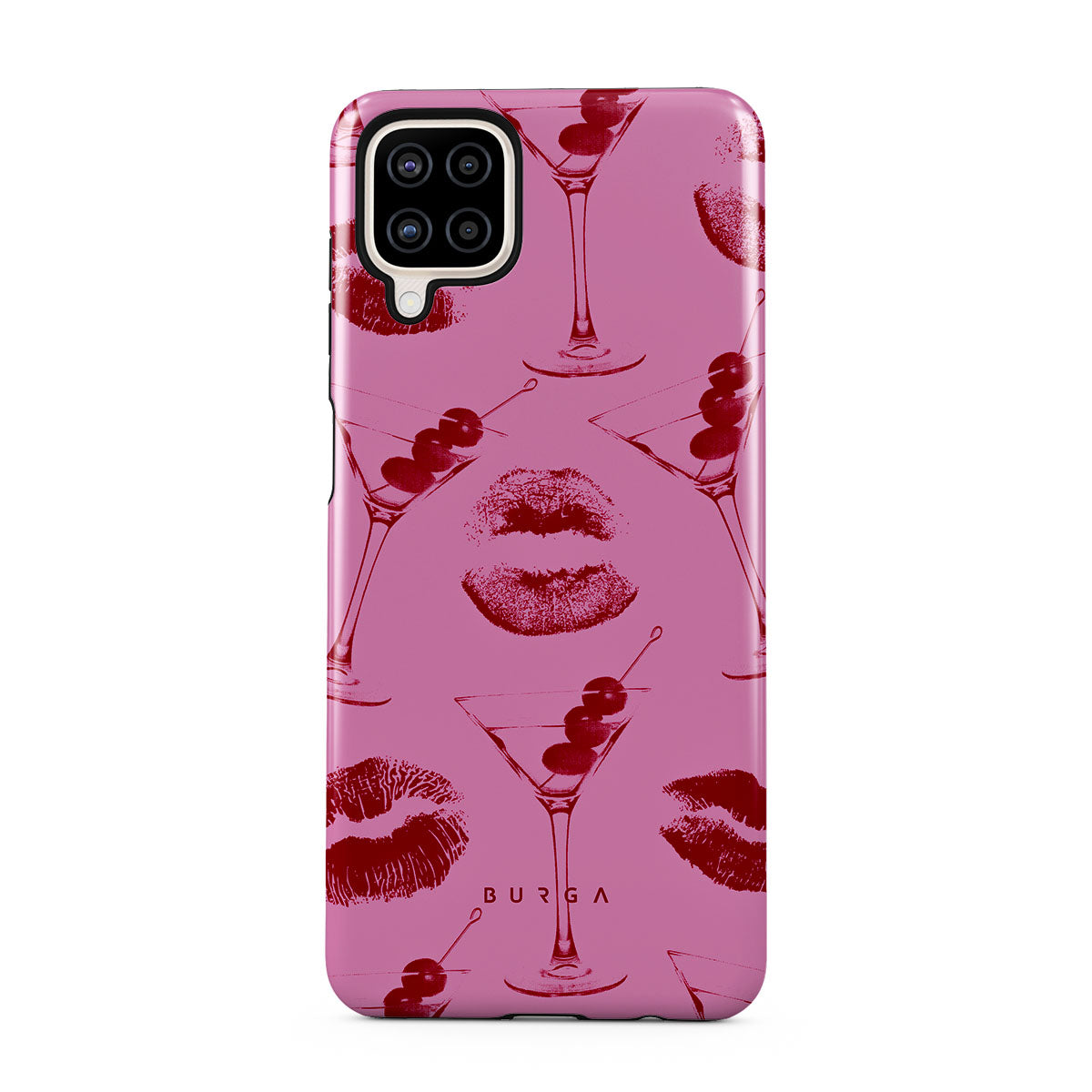 Este design contém: lábios vermelhos, beijos, copos de cocktail, martinis.