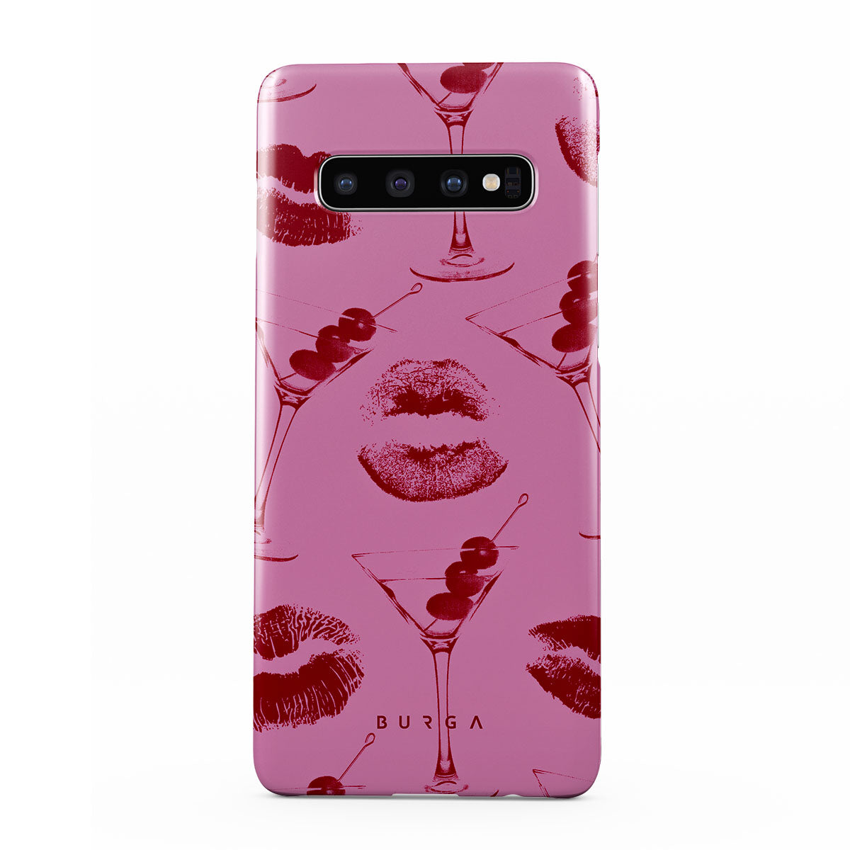 Este design contém: lábios vermelhos, beijos, copos de cocktail, martinis.