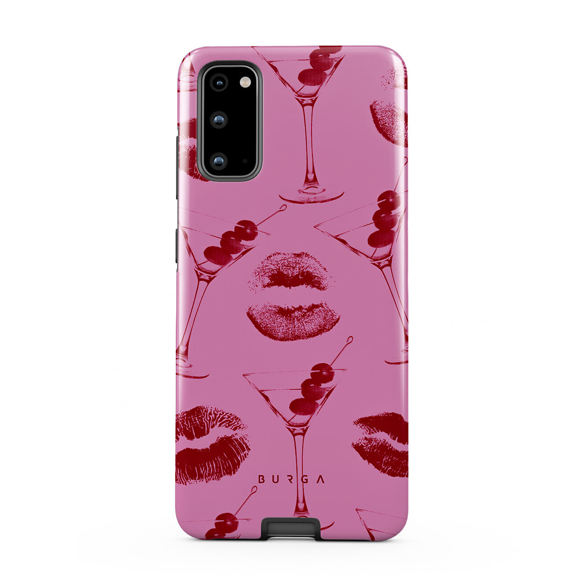 Este design contém: lábios vermelhos, beijos, copos de cocktail, martinis.