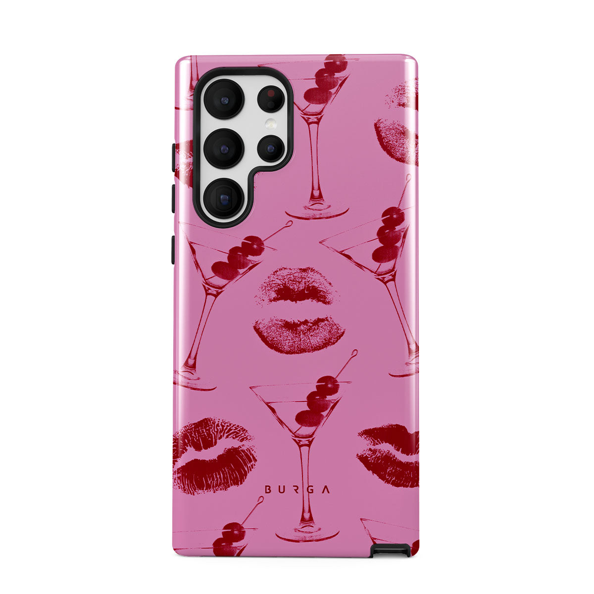 Este design contém: lábios vermelhos, beijos, copos de cocktail, martinis.