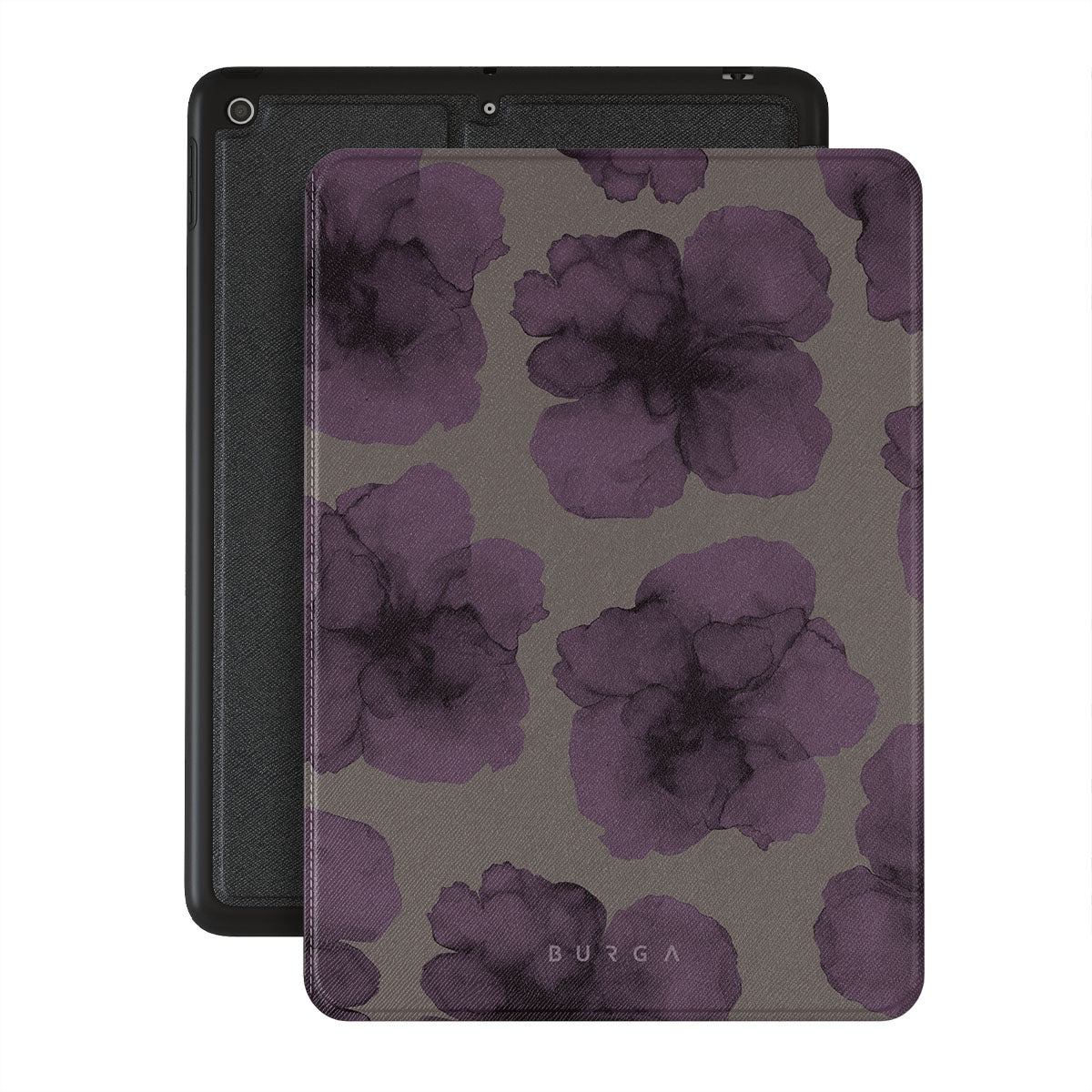 Este design contém: flores escuras, flores roxas, pétalas de violeta.