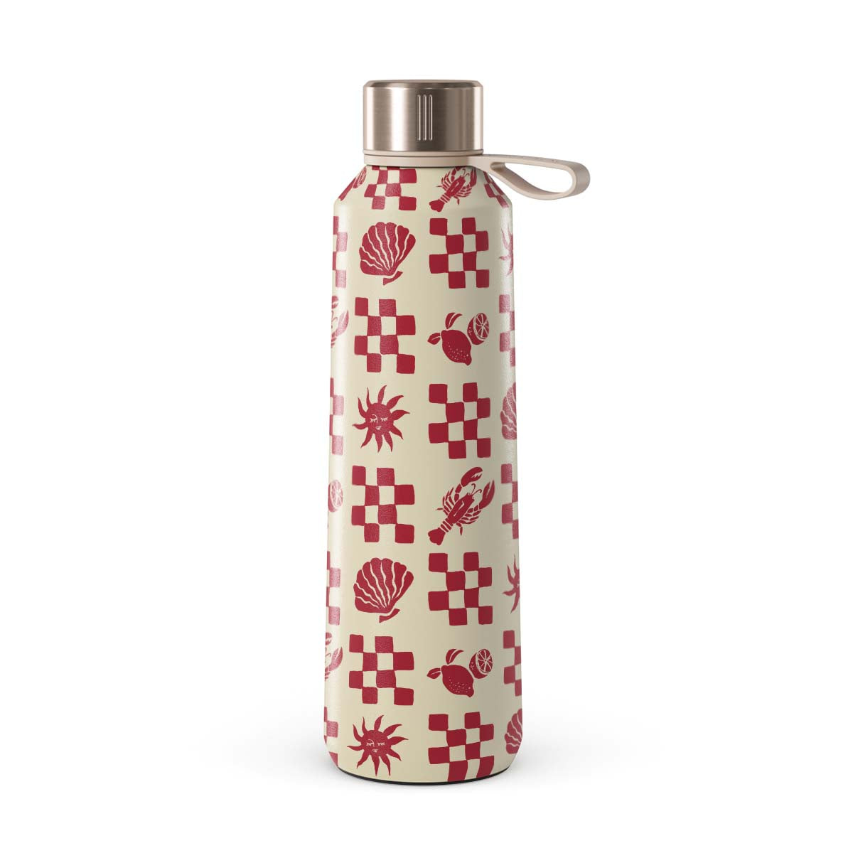 Mergulhe num mar de escolhas com mais de 150 designs exclusivos BURGA, cada um combinado com uma das três elegantes tampas de aço inoxidável: cinza estanho, ouro rosa ou prata. A nossa equipa combina meticulosamente a tampa com o design, para que tenha sempre uma garrafa com estilo.