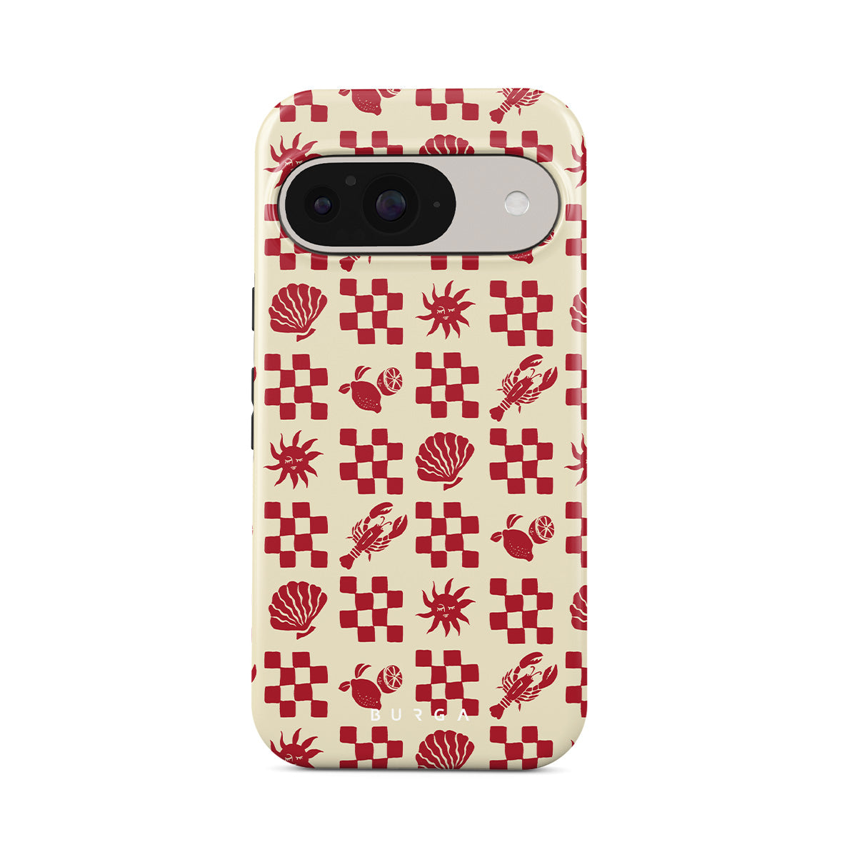 Este design contém:Padrões quadriculados vermelhos, conchas, lagosta, motivos italianos.