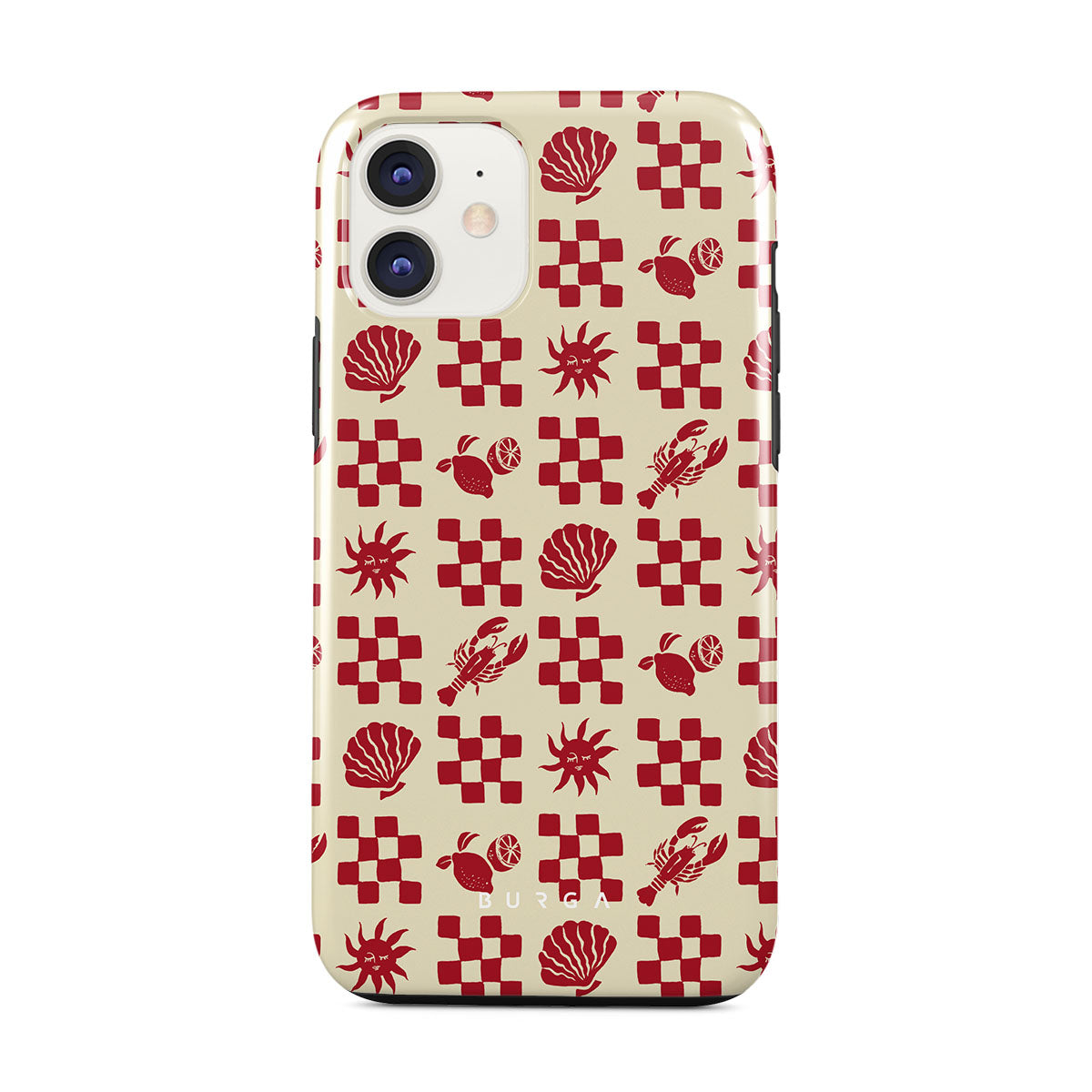 Este design contém:Padrões quadriculados vermelhos, conchas, lagosta, motivos italianos.
