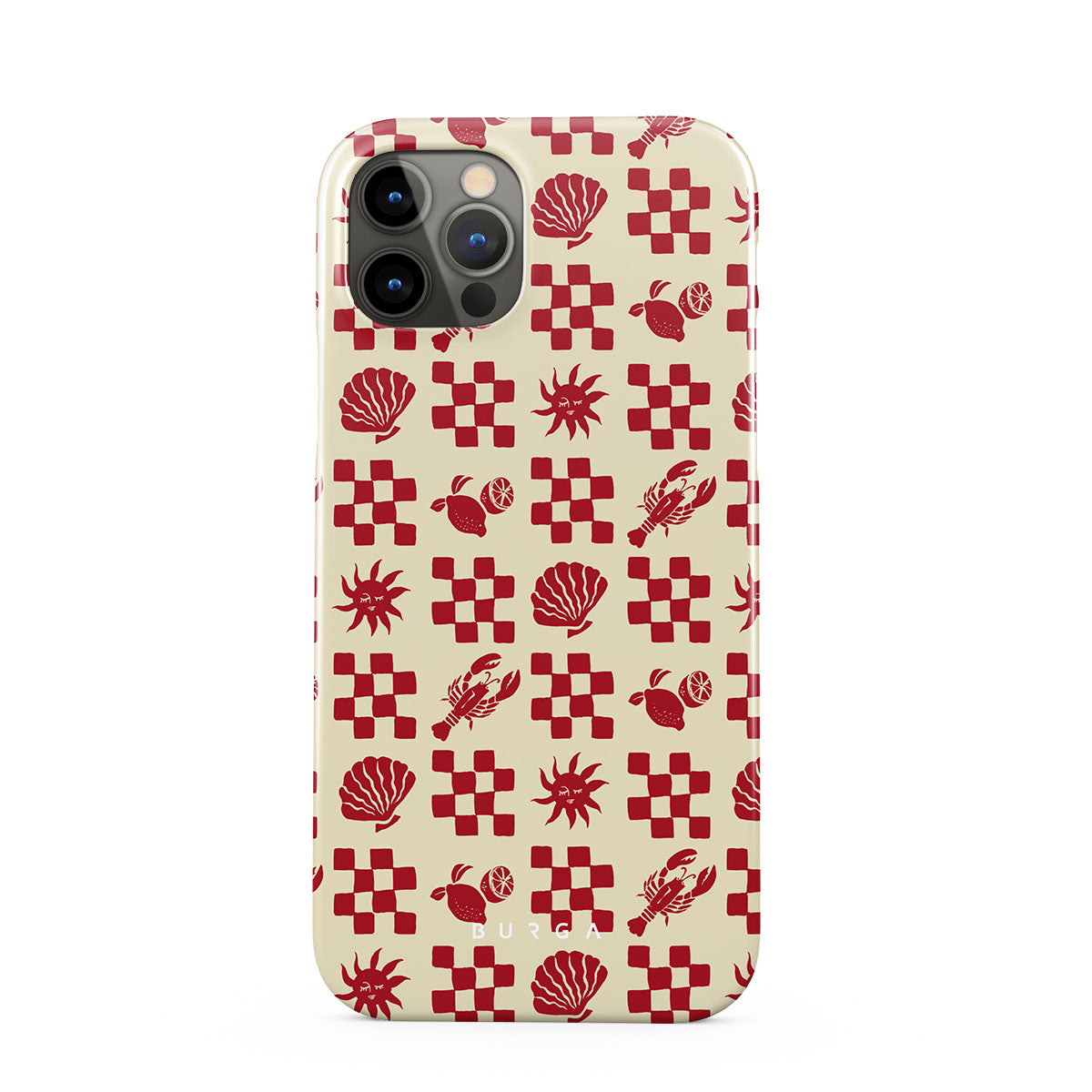 Este design contém:Padrões quadriculados vermelhos, conchas, lagosta, motivos italianos.
