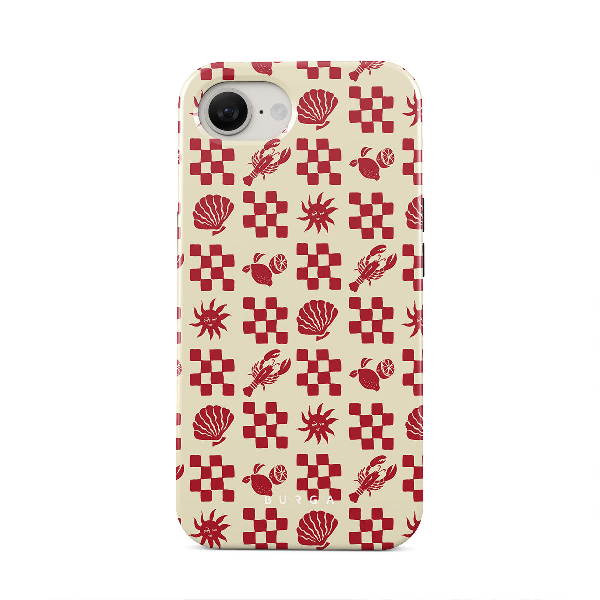 Este design contém:Padrões quadriculados vermelhos, conchas, lagosta, motivos italianos.