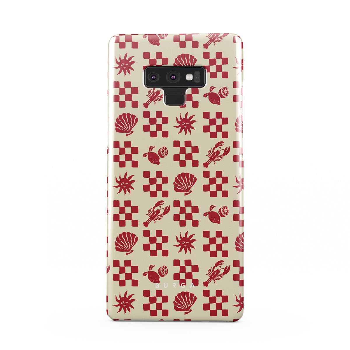 Este design contém:Padrões quadriculados vermelhos, conchas, lagosta, motivos italianos.