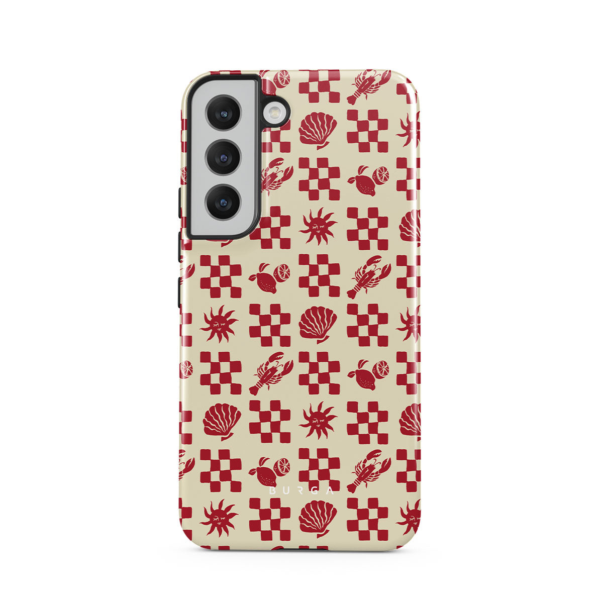 Este design contém:Padrões quadriculados vermelhos, conchas, lagosta, motivos italianos.