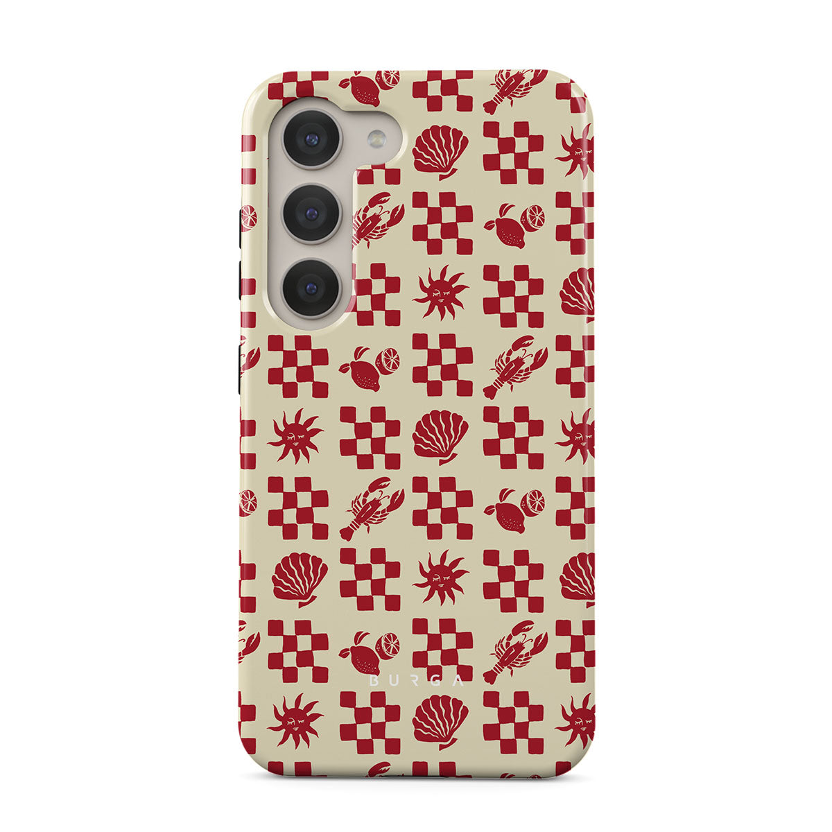 Este design contém:Padrões quadriculados vermelhos, conchas, lagosta, motivos italianos.