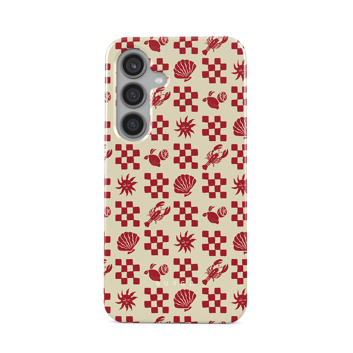 Este design contém:Padrões quadriculados vermelhos, conchas, lagosta, motivos italianos.