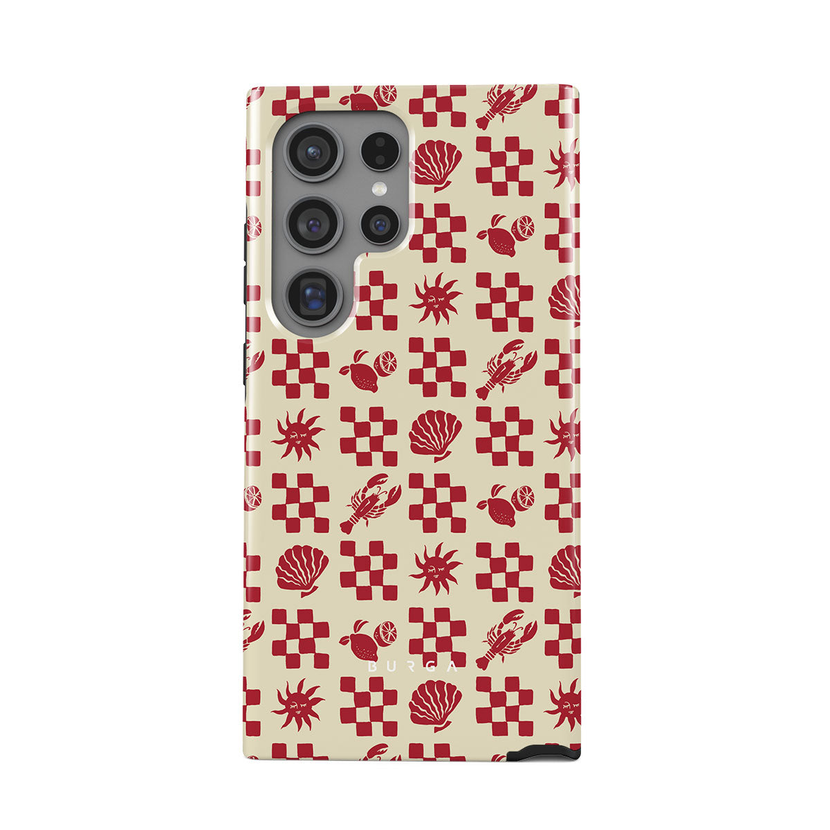 Este design contém:Padrões quadriculados vermelhos, conchas, lagosta, motivos italianos.