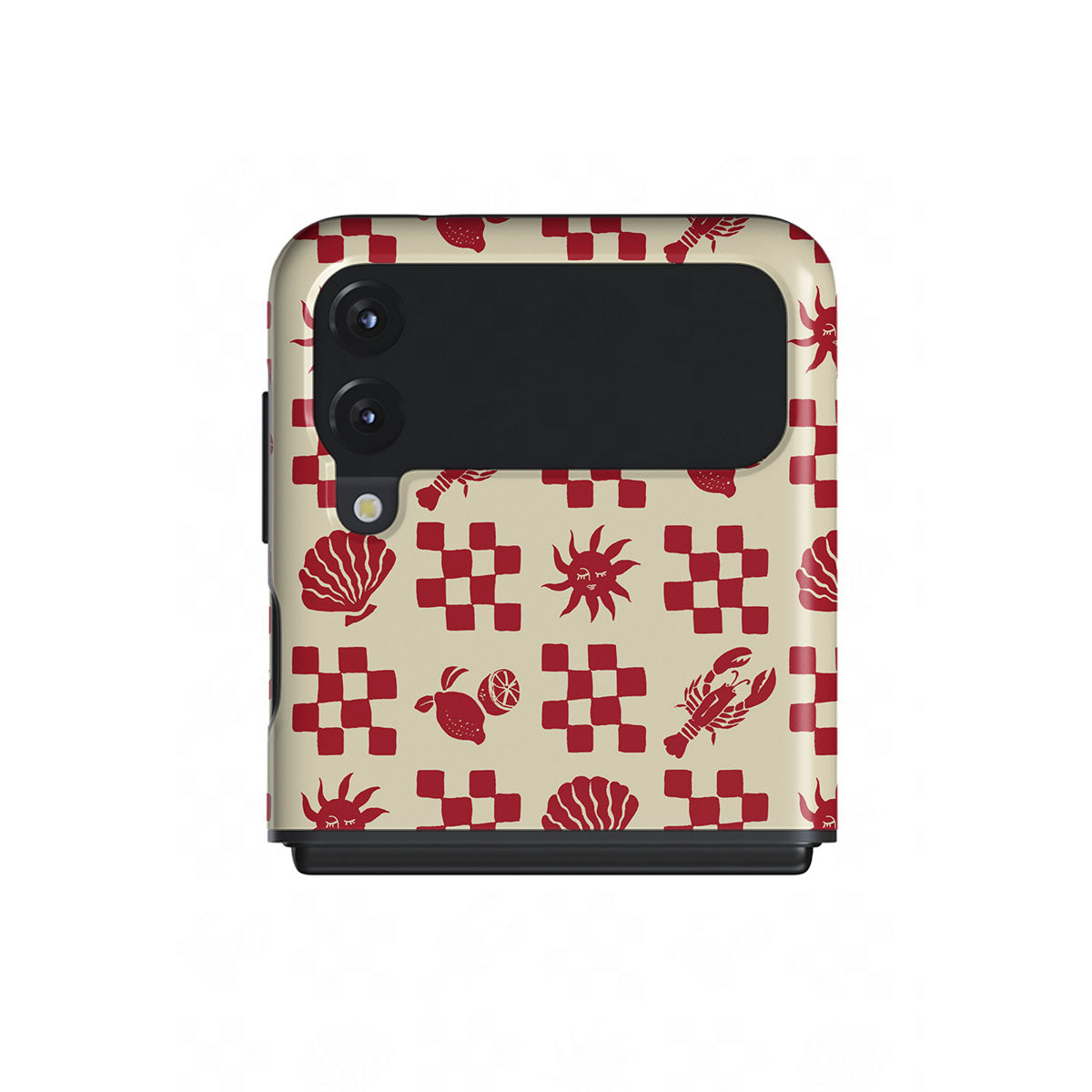 Este design contém:Padrões quadriculados vermelhos, conchas, lagosta, motivos italianos.