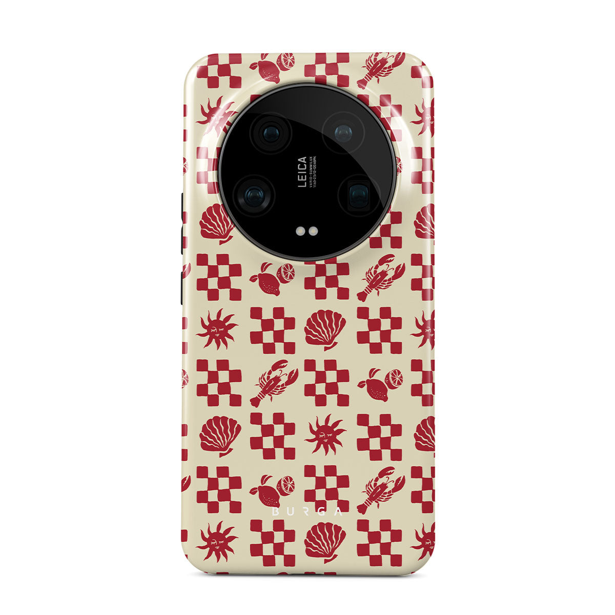 Este design contém:Padrões quadriculados vermelhos, conchas, lagosta, motivos italianos.