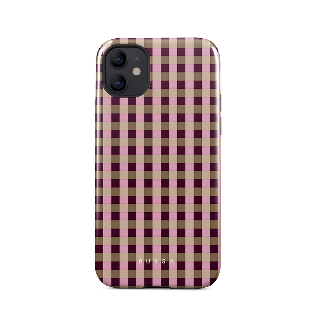 Este design contém: padrão xadrez rosa e bordô em estilo moderno.