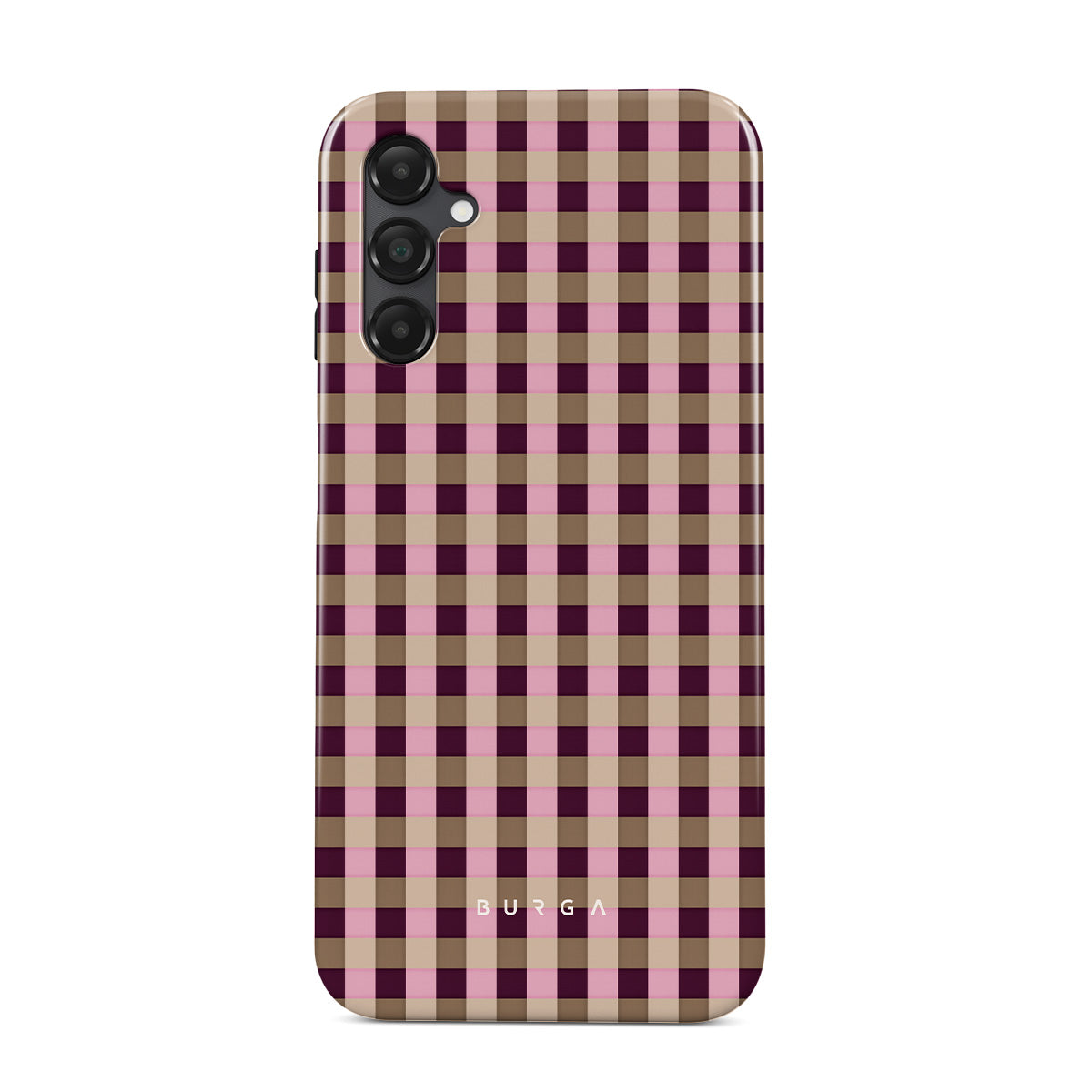 Este design contém: padrão xadrez rosa e bordô em estilo moderno.