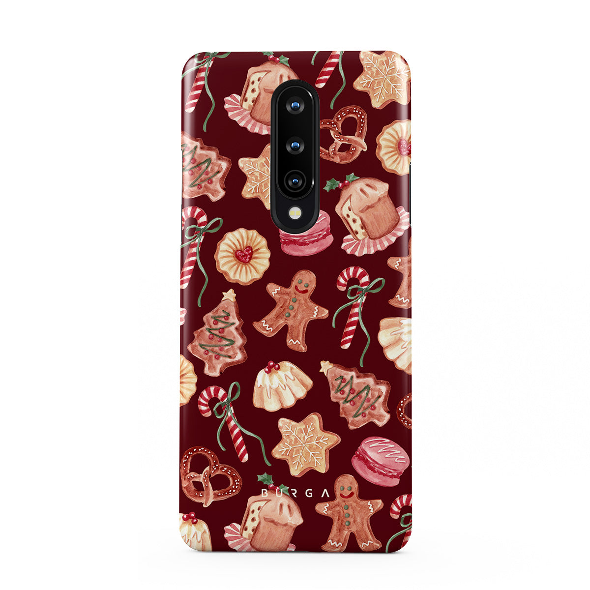 Este design contém: biscoitos de Natal, homens de gengibre, bengalas de doce, doces de hortelã, guloseimas festivas, fundo vermelho bordô