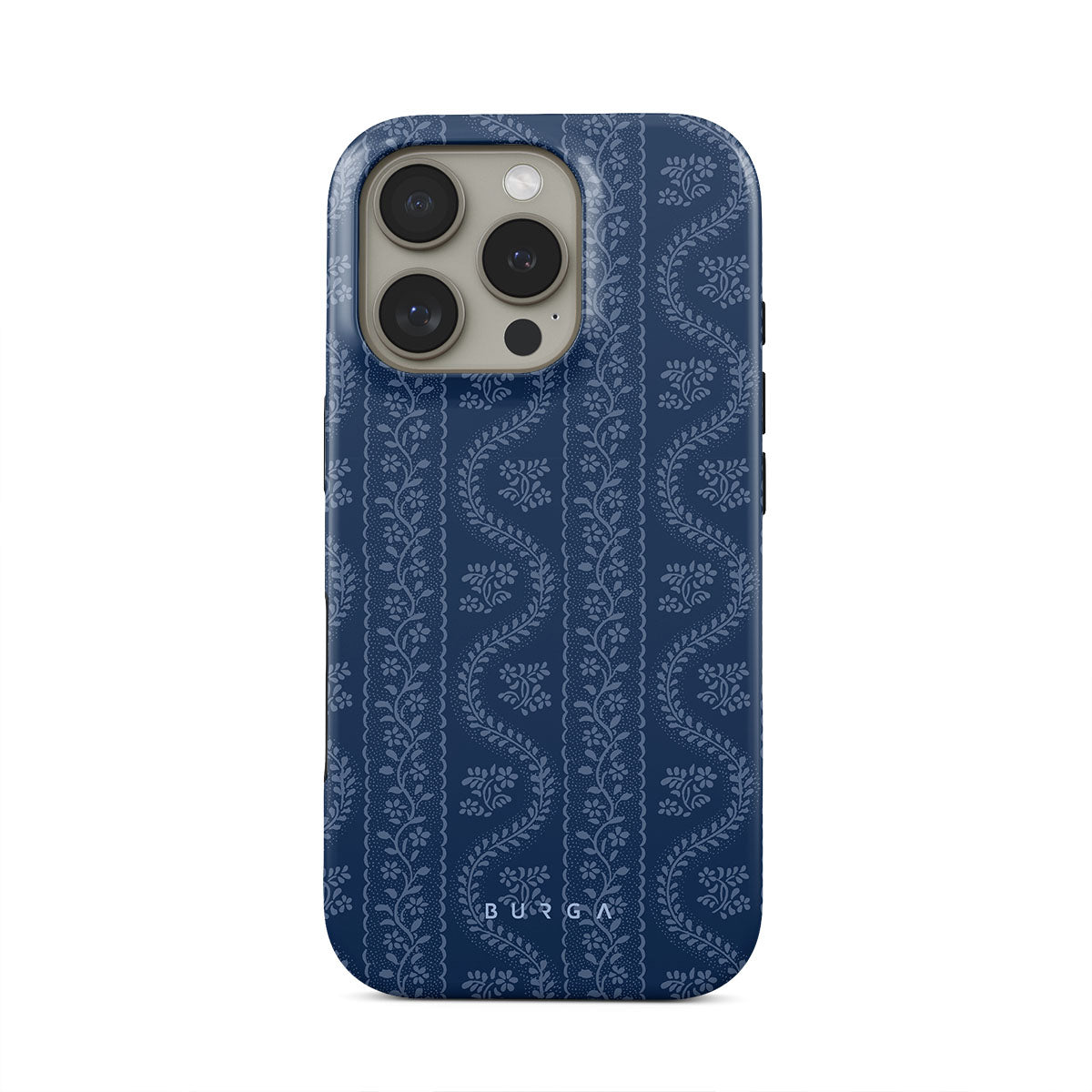 Este design contém: cornucópia, inspirado na ganga, vintage, clássico, padrões intrincados, tons azuis.