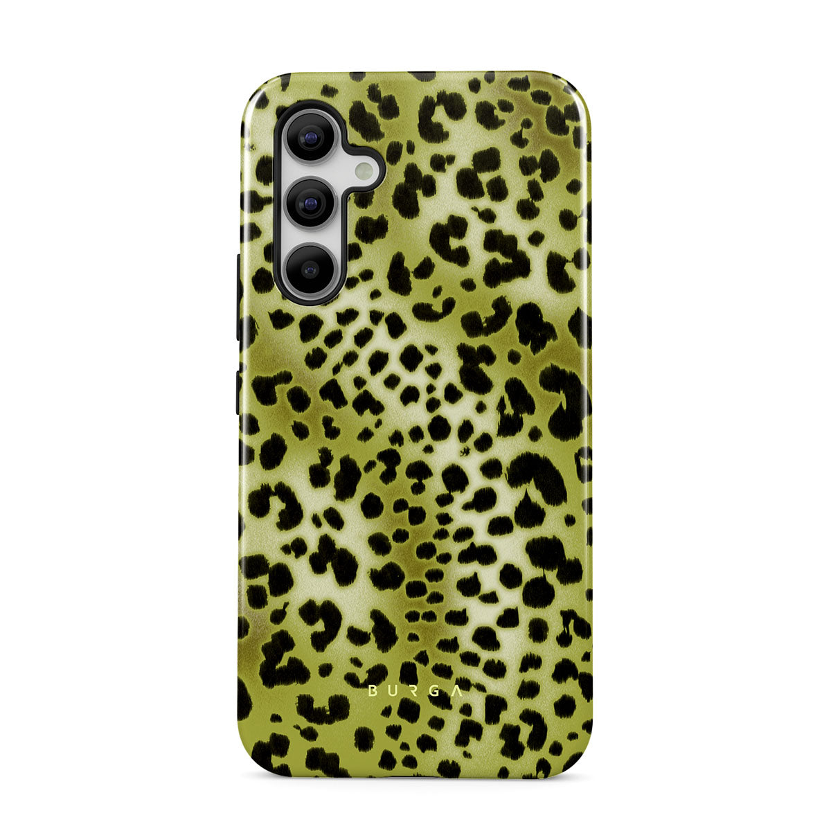 Este design contém: estampa de leopardo, manchas, verde oliva, estampa de animal.
