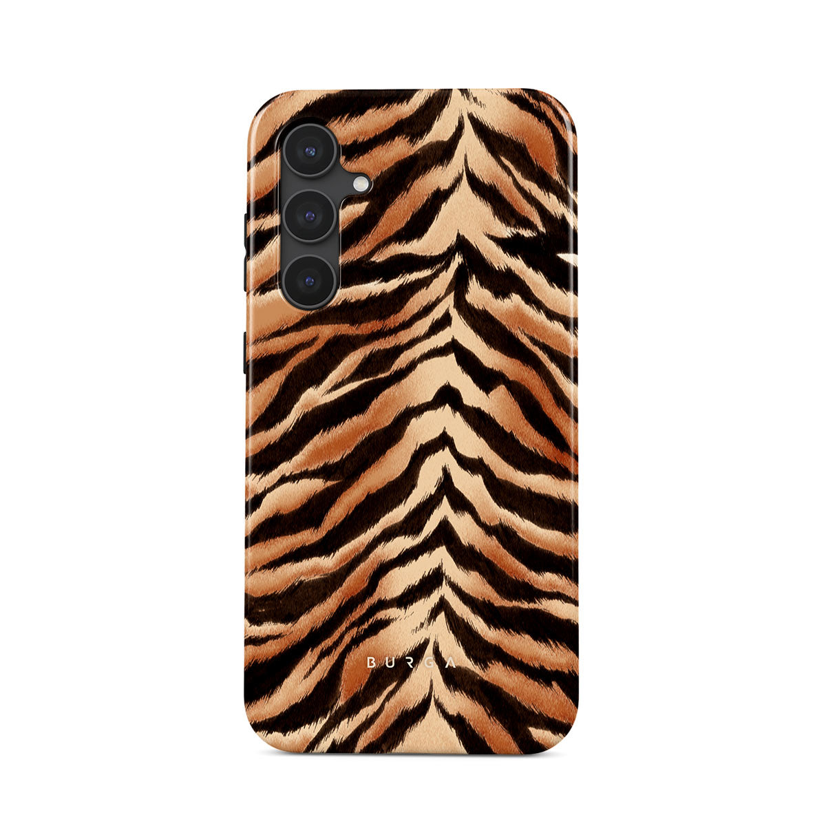Este design contém: riscas de tigre, preto, laranja, estampa de animal, padrão ousado.