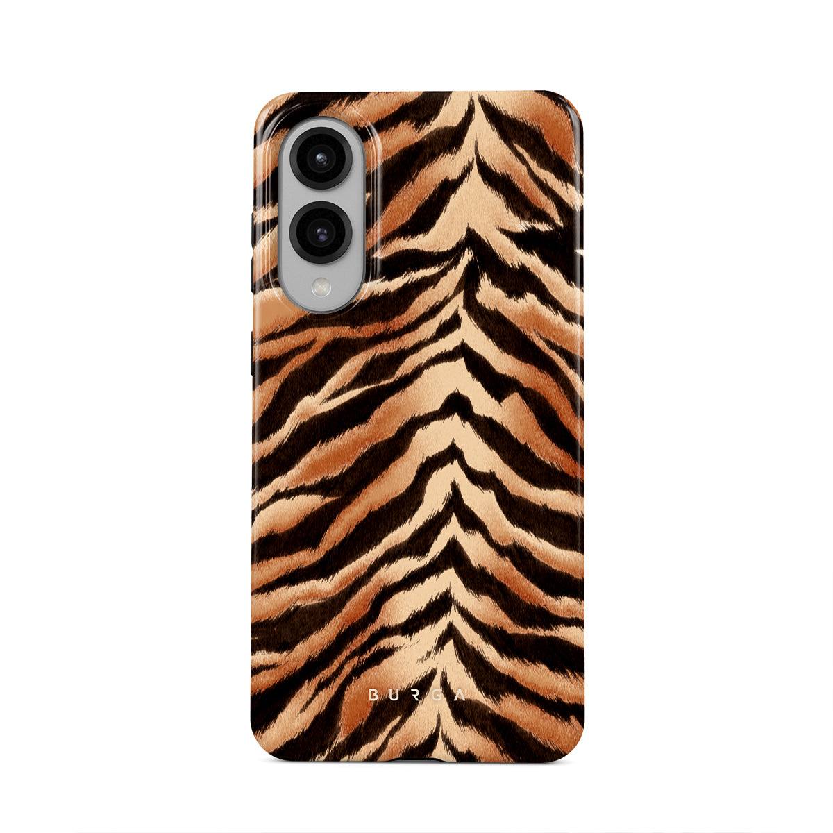 Este design contém: riscas de tigre, preto, laranja, estampa de animal, padrão ousado.