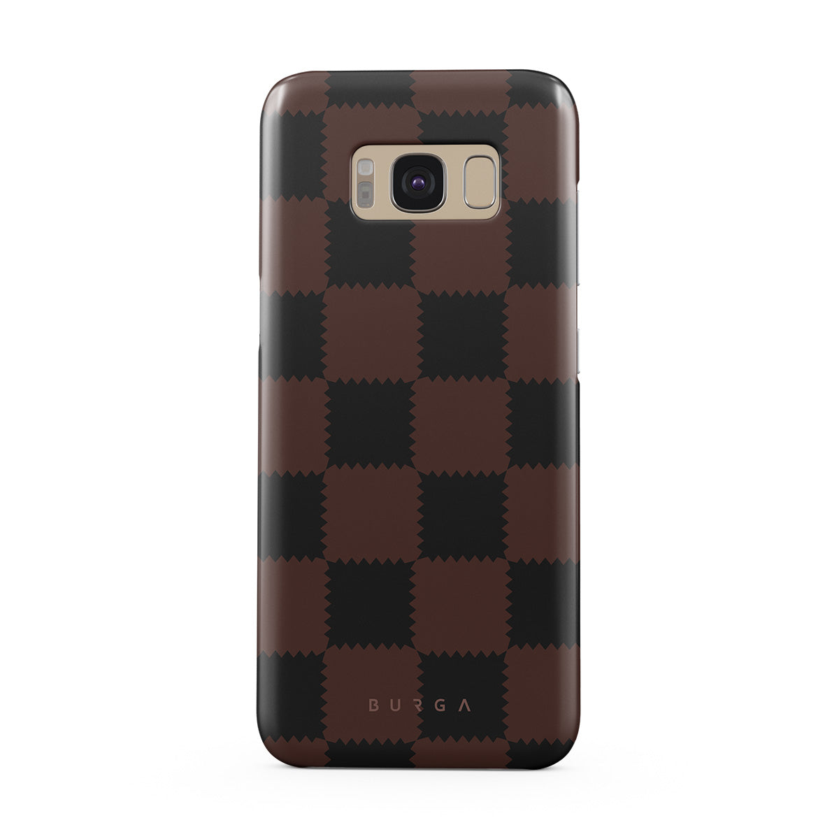 Este design contém: padrão xadrez, tons castanhos e escuros, geométrico