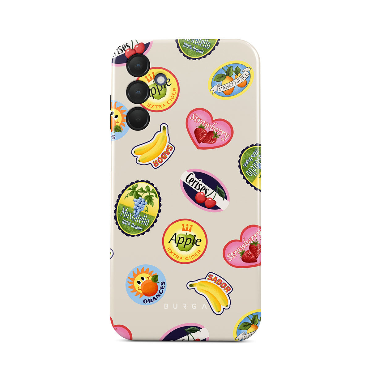 Este design contém:Bananas, selos, cerejas, maçãs, laranjas, morangos, cores vibrantes, acentos cítricos, motivos de frutas, padrões tropicais.