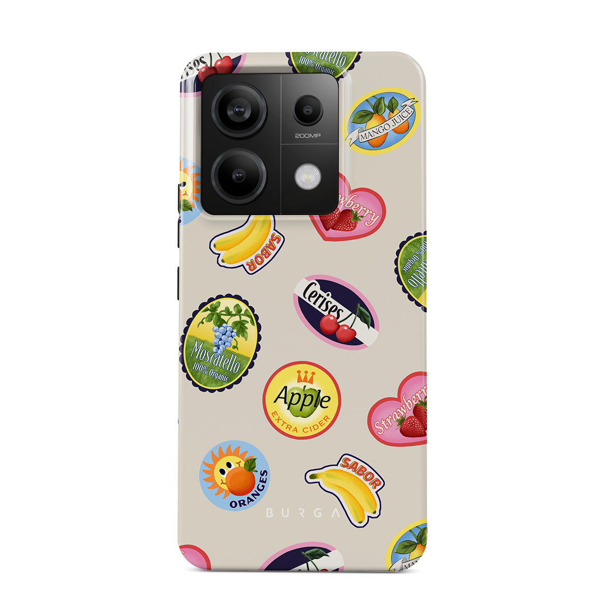 Este design contém:Bananas, selos, cerejas, maçãs, laranjas, morangos, cores vibrantes, acentos cítricos, motivos de frutas, padrões tropicais.