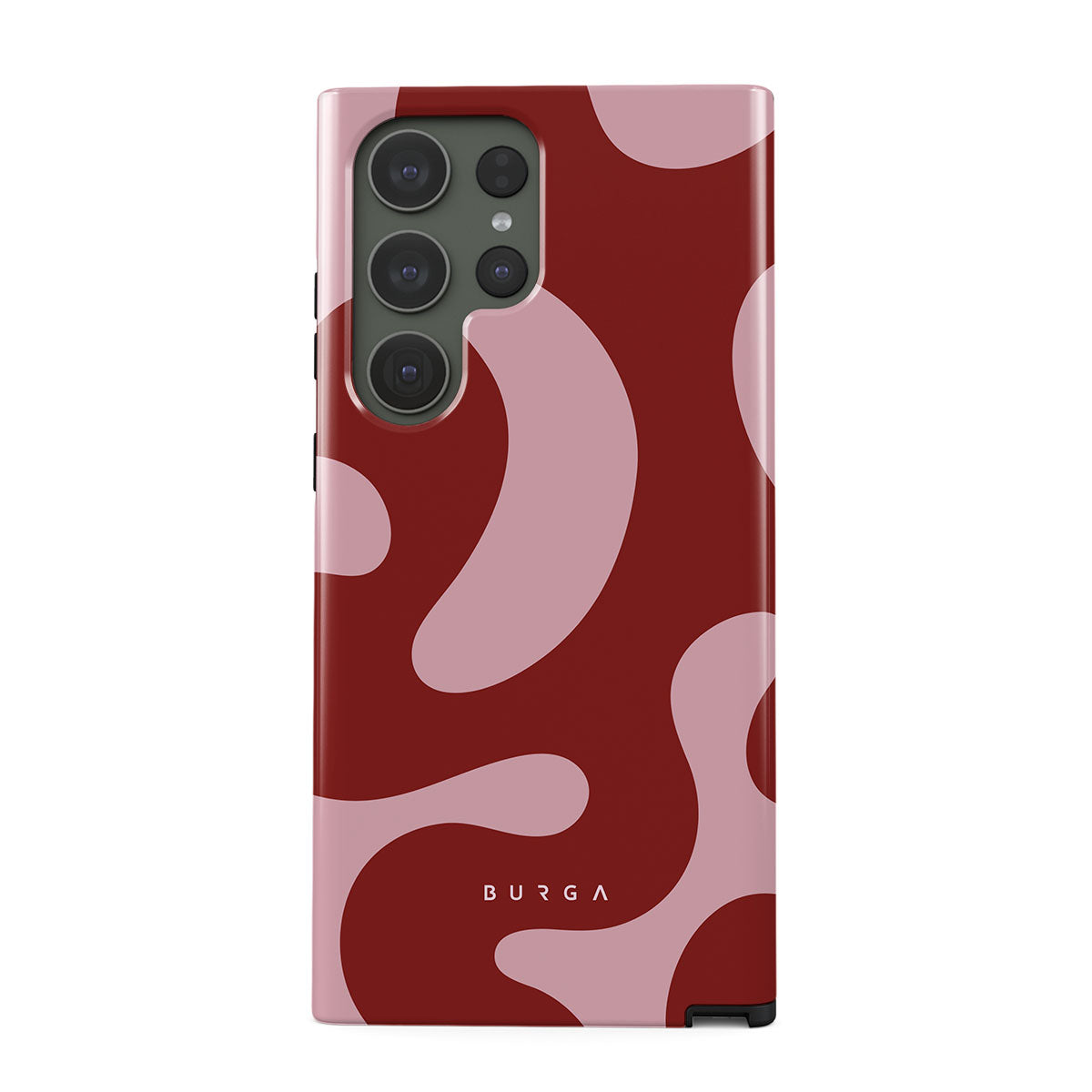 Este design contém: ondas, padrão abstrato, redemoinhos vermelhos escuros, redemoinhos cor-de-rosa.