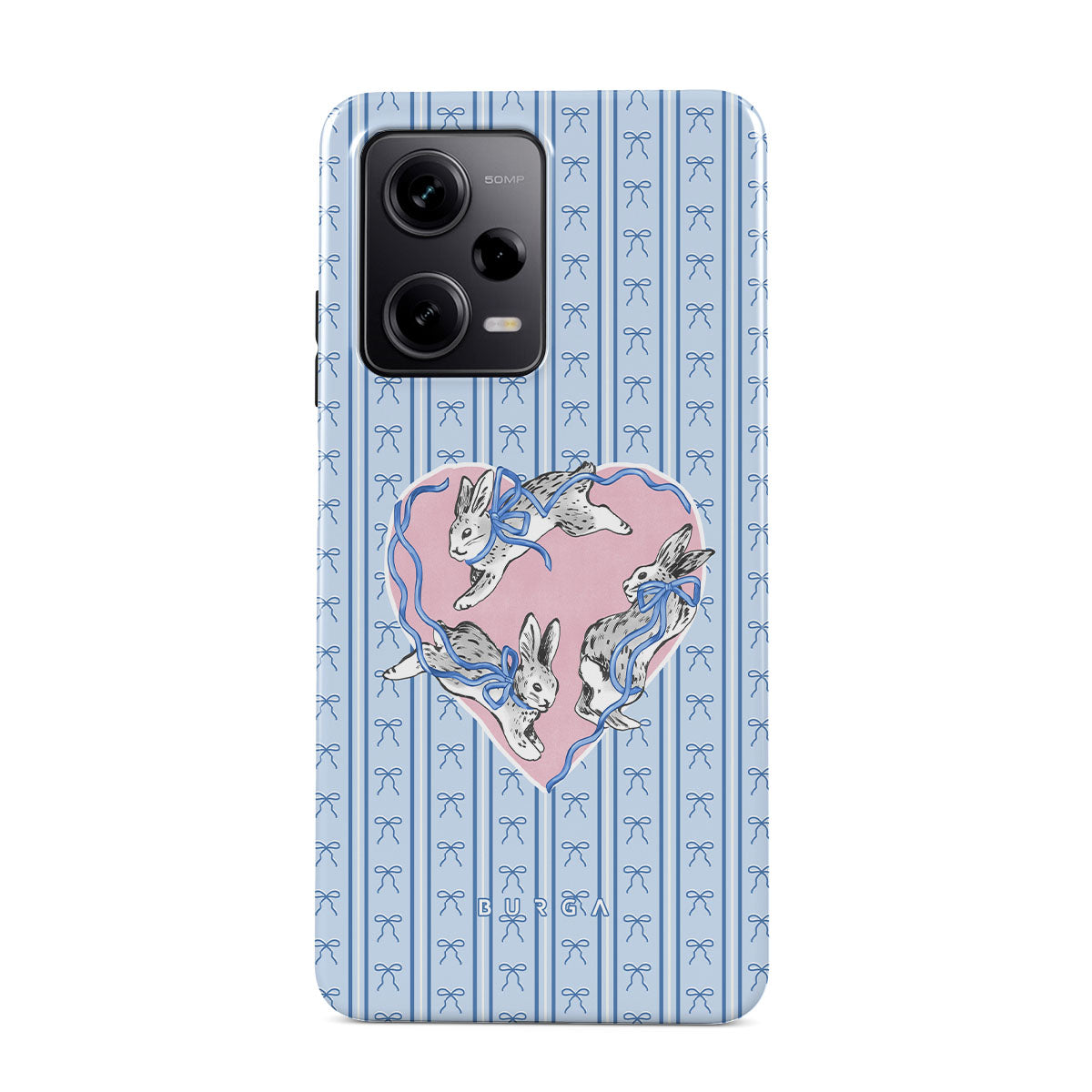 Este design contém: coelhos brancos, moldura de coração, riscas azuis