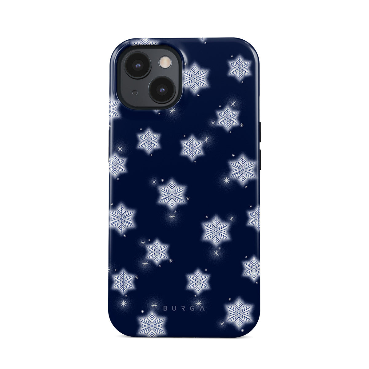 Este design contém: flocos de neve brancos, fundo azul marinho, padrão de flocos de neve de inverno, flocos de neve geométricos, design de inverno clássico